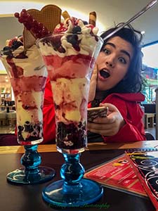 I am blessed with a wonderful friendship with my daughter, so it’s not just my little sparrow visiting but friend and confidante as well. Food has always been a unifying factor over the years, and meals were never something we could rush through because she was always such a slow eater as a child. So hunting out cosy cafes around town together is a natural thing. Never mind the weather outside, if an ice cream parfait or cappuccino catches our fancy, or a herbal tea with cookies, then we will drop all other shopping intentions and imbibe the flavors of the moment.