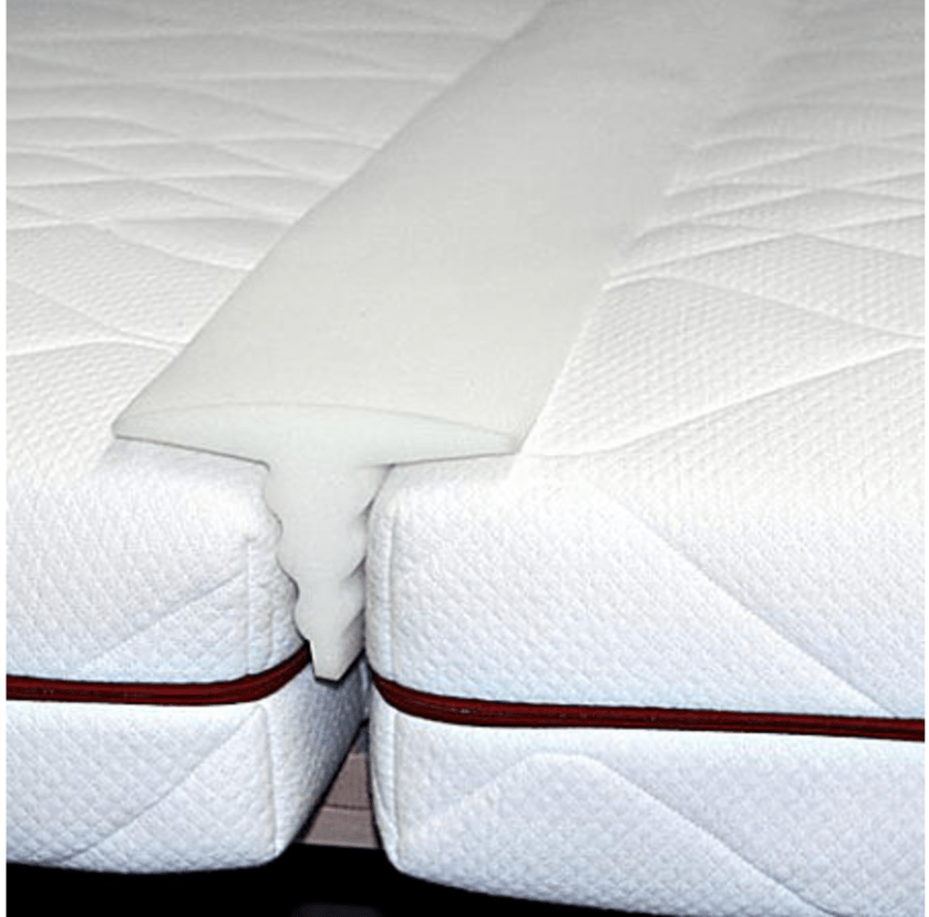 Then I remembered the twin bed mattress connector I had stumbled upon some months back. My mother was fond of twin beds, and found them more convenient than single large beds. If you have guests who wanted a joint bed, just push the two twin beds together, join them with a fitted sheet, and voila! you have a king-size. Perfect idea except for the darn gap between mattresses. So I finally got around to getting the connector, and much to my amusement, it is called a Liebesbrücke (love bridge) by several bed and mattress manufacturers in Germany.