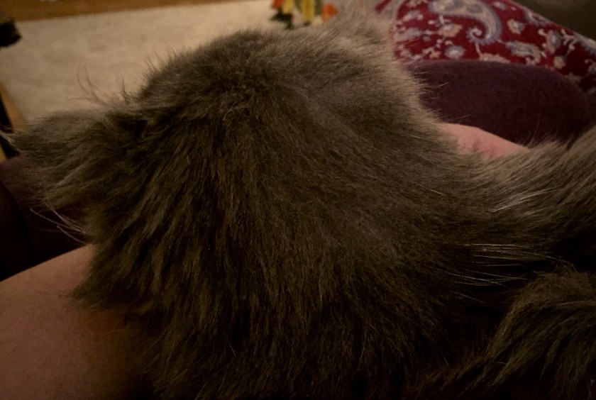 I came home from work to a very weak little cat and knew immediately that the end is near. We cuddled on my rocking chair, and she still has her fight in her, being grumpy about a position she doesn’t like or insisting on returning to her bed.