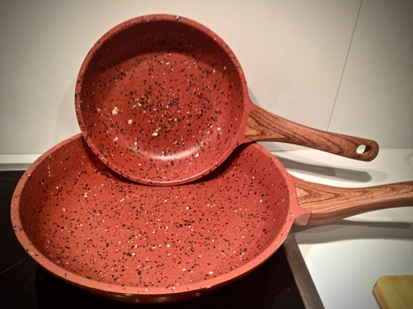 Some of you reading this may be frowning and wonder WTF is stone cookware. No, I am not on the paleo diet, nor have I gone backwards in time to cook over open fire. These are pans that have been coated with ground stone, mostly marble or granite, which make them the best type of non-stick cookware I have ever encountered. They are a dream to cook with, easy to wash, are scratch resistant, you can use metal or plastic utensils, and are energy saving as well. Like the cast iron pans, the stone coating regulates the temperature evenly and quickly, which means you can cook faster and at a lower temperature regardless of whether you are using a gas, electric or induction stove. Because on the inherent non-stick characteristic of the stone coating, I also need almost no oil. Efficient, energy-saving, and healthy – what more can I ask for?