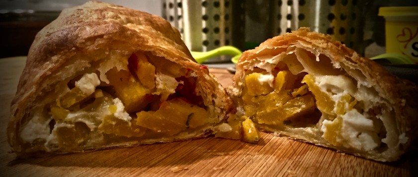 In my desperation I turned to Pinterest to find alternative recipes. So far I have been successful with pumpkin strudel (see photo), oven-baked fries, pancakes, and salad. But there is still a third of a pumpkin left, and I draw the line at pumpkin ice cream.