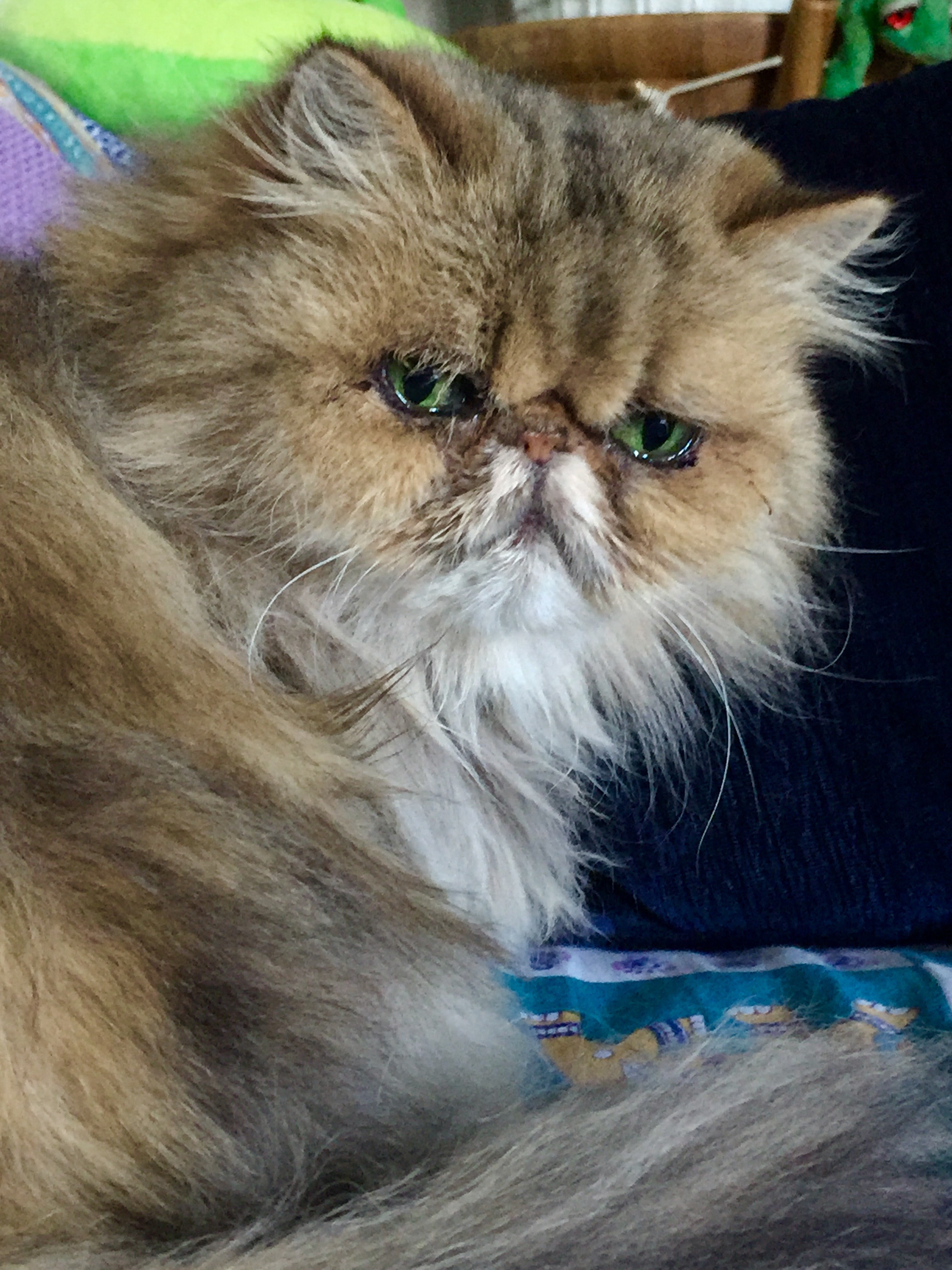 Last year, Mom wanted to adopt a housemate for me so that I could have company while she was away at work. When we started looking over all the pet adoption sites, we stumbled on the special section of the Berlin Animal Shelter Mom’s eyes immediately fell on Kessy, a 16-year old Persian who had an acute liver condition and didn’t have much longer to live. She just needed a loving family to make her life as comfortable as possible until she crossed the Rainbow Bridge. At first I didn’t understand why Mom brought home this wobbly old dame who could barely walk, hardly meowed, and just wanted to cuddle and be cooed. Heck, I wanted an active playmate! But as I watched Kessy turn from floppy mop to grand dame, I understood that our role was to bring back the joy and make the other rescue cats believe in humans again, like me. We were told Kessy would live between four weeks to four months, and we had her for almost four months.