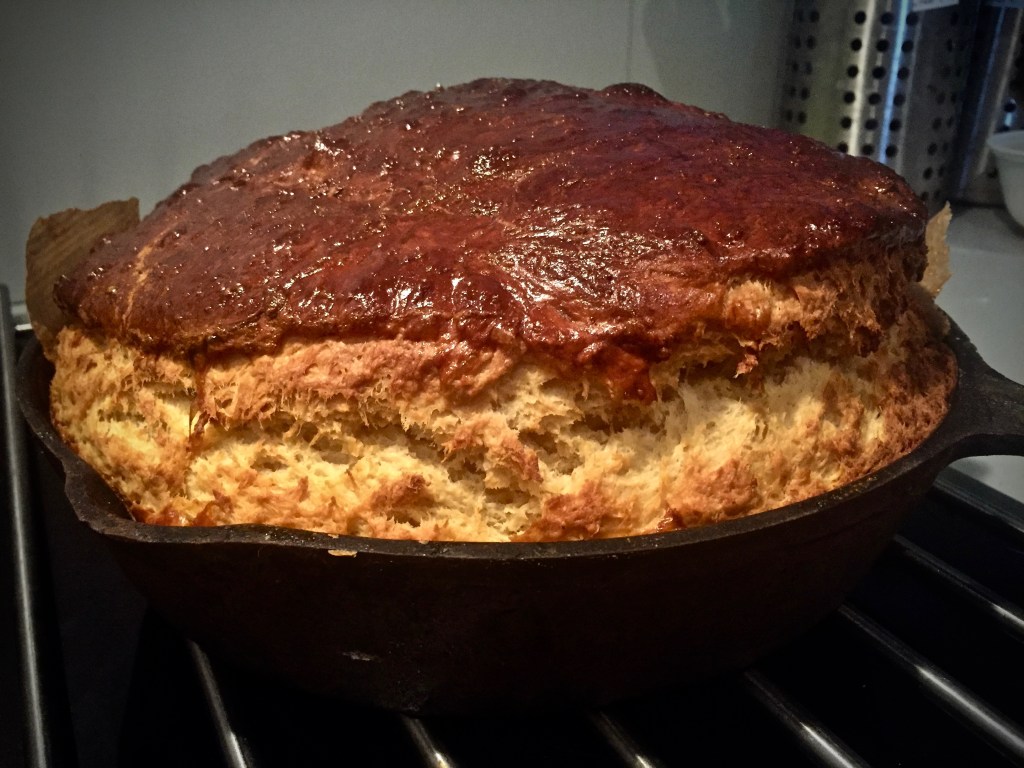 When feeling particularly productive, yeast breads will be churned out, though I have no patience for waiting for the dough to rise. On most weekends, Irish soda bread (my own tweaked recipe) does marvellously. Everything is baked in my cast iron pan, no such thing as metal bread pans for this diva! Seriously, the crust resulting from the cast iron is topped only by a clay bread pot, which I neither have nor need. Should I ever want a clay pot for baking break, then I could always cure a terracotta flower pot! There are enough recipes online for flower pot bread.
