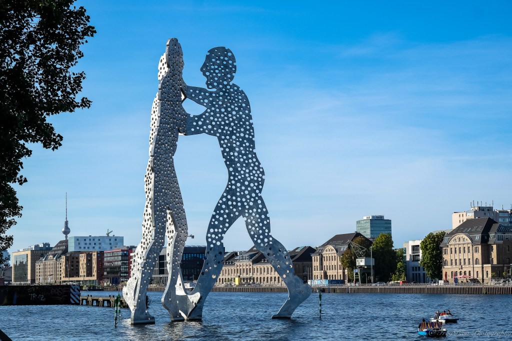 The permanent art installation in the middle of the Spree River in East Berlin marks the convergence of the three city zones of Treptow, Friedrichshain and Kreuzberg. Designed by the American sculptor and artist Johnathan Borofsky, the piece is also a symbol of the unification of East and West Berlin. In addition, the location of the sculpture, if photographed at the right angle, also brings together two iconic Berlin landmarks – Molecule Man and the TV tower at the Alexanderplatz.