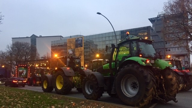A standard German tractor is intimidating enough as it is, but thousands of them gathered in one spot or driving by convoy is a sight to behold. They remain good-natured and polite thus far, although I must admit it reminded me very much of an invasion of Daleks… calling Dr. Who! Do I see a TARDIS flying in over Tegel? No wait, Schönefeld!