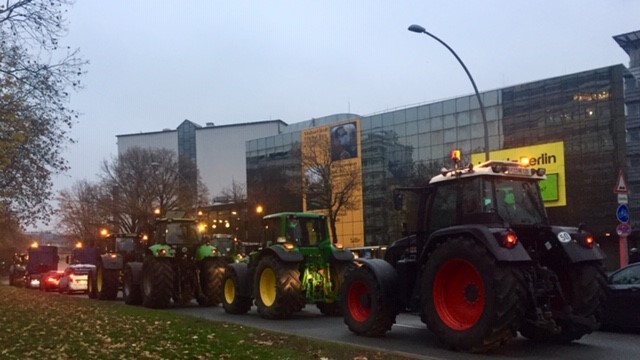 The Brandenburger farmers are taking to the streets, but not in the usual manner of shouting on foot and clogging the main roads through masses of angry demonstrators. Don´t expect potatoes and onions to be thrown around in this protest. Thousands of farmers have taken over the city, yes, and clogged the main arteries, yes, but with their tractors honking non-stop. It is, to put it politely, absolute bedlam in Berlin at the moment, since the demo is taking place around the Brandenburg Gate. All public transportation lines leading to the Parliament and Brandenburg Gate have been cancelled until this afternoon and commuters have been asked to find alternate routes via subway or tram. Good luck with that. Bike or on foot is the only viable solution at the moment.