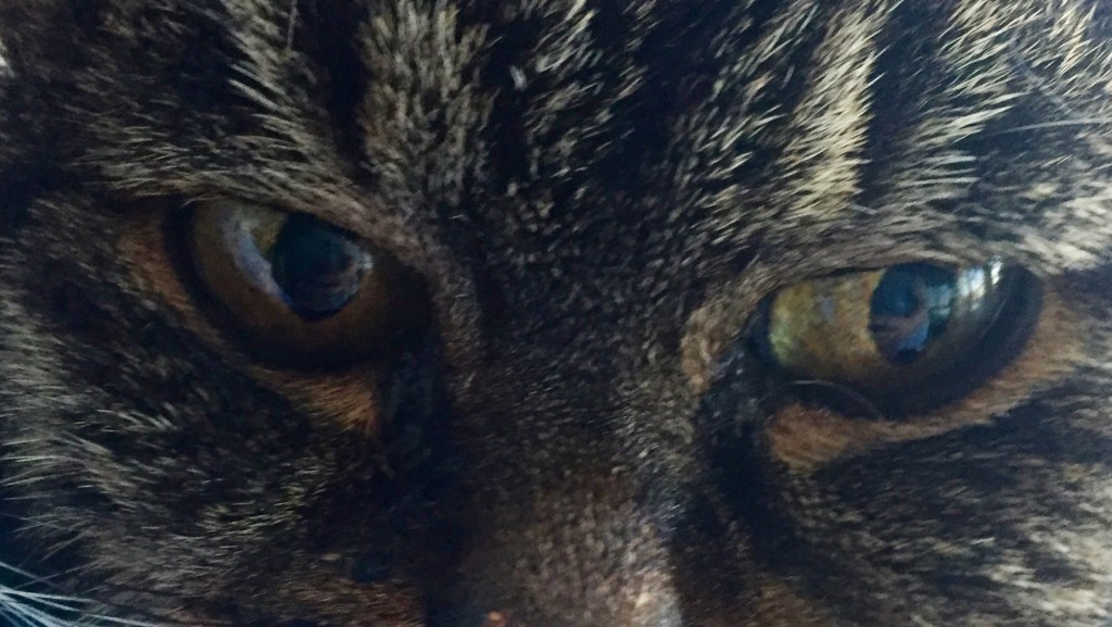 As you can see from the photograph, I do get a lot of cuddles from Human M, and each time I shout to demand a cuddle she is there to pick me up and give me some. Now that it is rather frosty outside, I don’t mind the warm bathrobe or blanket I get to snuggle under, it is comforting in more ways than my four paws.