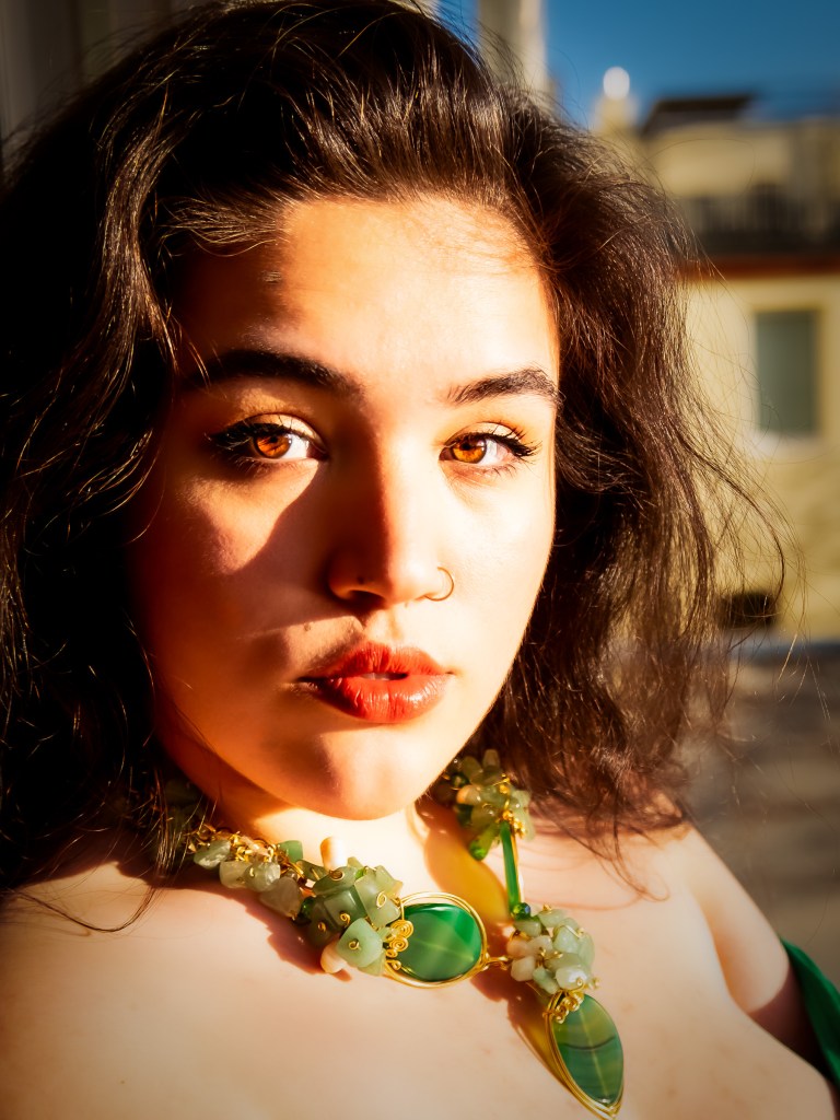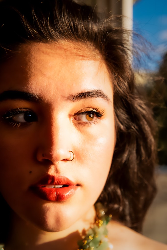 Nothing quite like available light, the brilliance of the setting sun, a light breeze to do the hair styling for us, and a good ladder! It was such a relief not to have to shoot indoors and use a flash for this one! We didn’t have a Richard Burton on hand, and Maike refused to do the Cleopatra eye shadow as vehemently as I refused to find the Cleopatra accessories, so we were clear on that. The rest was the usual “let’s see where this leads us” philosophy.
