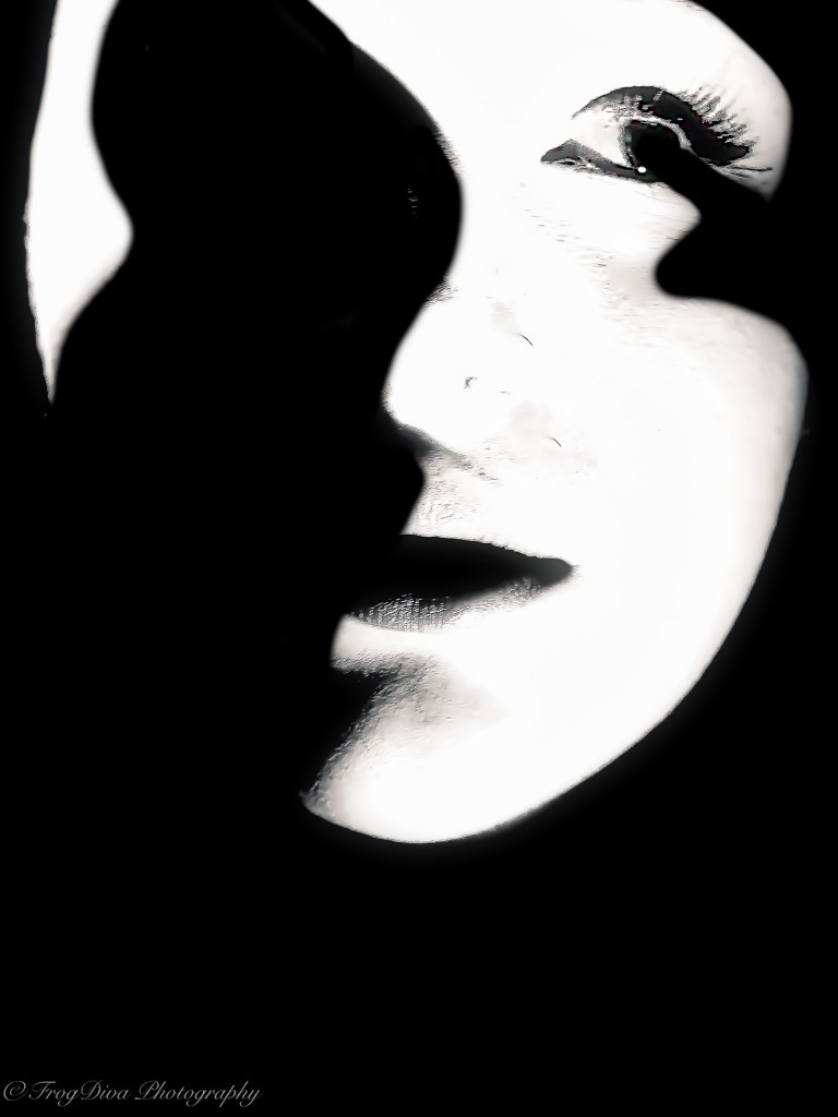The photograph on the left is one of the more experimental images I have produced to date, and all due a lighting fluke. It all began in and with my bootleg studio set-up, where I used one flashlight above and another one from below while the rest of the room was in complete darkness.