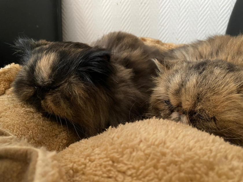 Cherry not only claimed the treats from Lolita, but she also settled down next to her in the cushion for a cuddle. We were absolutely dumbstruck and didn’t dare move from our seats in case we spooked her. Lolita purred happily, as if to say “Well finally! It took you long enough!” They shared a catnap, no hissing or snorting, but incredibly harmonious.