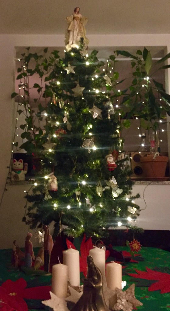 Down into the basement we went to hunt for the decorations. I fundamentally object to buying a fresh tree, no matter how magical they smell and what a difference it makes to have instead of an artificial one, but I can’t bring myself to throw the whole thing out at the end of the holidays. It is literally throwing money away, and in a year when every penny counts, all the more reason to hold on to what is already there.