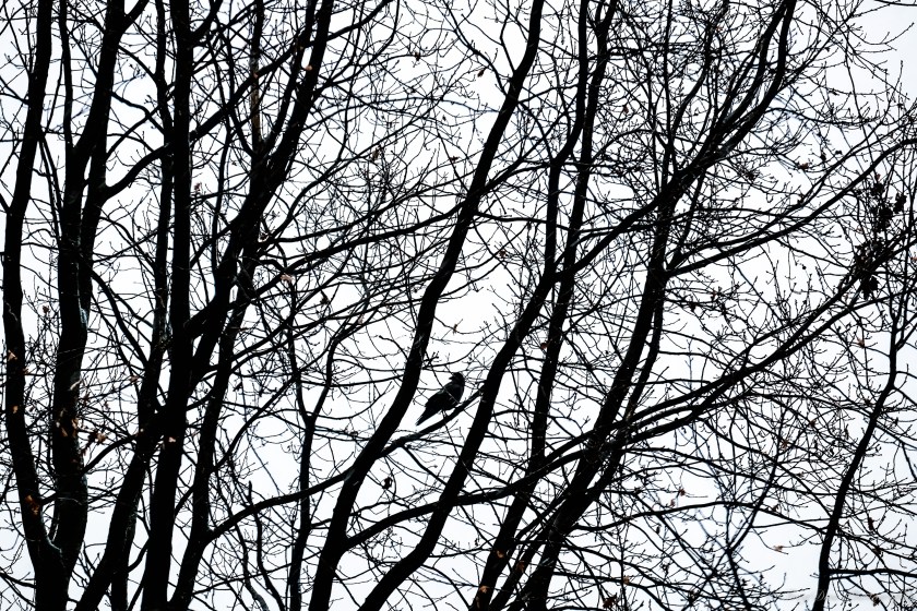 While writing this and watching the snow fall, a crow kept going back and forth to the tree in the courtyard. I watch it as it screeched its usual messages to the world, announcing whatever it was he felt obliged to do. There was a certain serenity about him though, and he was in no hurry nor did he flutter about in desperate attempts to get comfortable or warm. He withstood the snow, wind and cold, and if he got bored, he flew around for a few minutes and returned to his branch. This is how the photographs came into being. Though the flock of sparrows that followed would have made much more artistic photographs, it was that solitary crow that spoke to me the most. There was much to be learned from his capacity to remain calm amidst the increasingly uncomfortable surrounding.