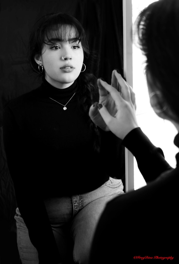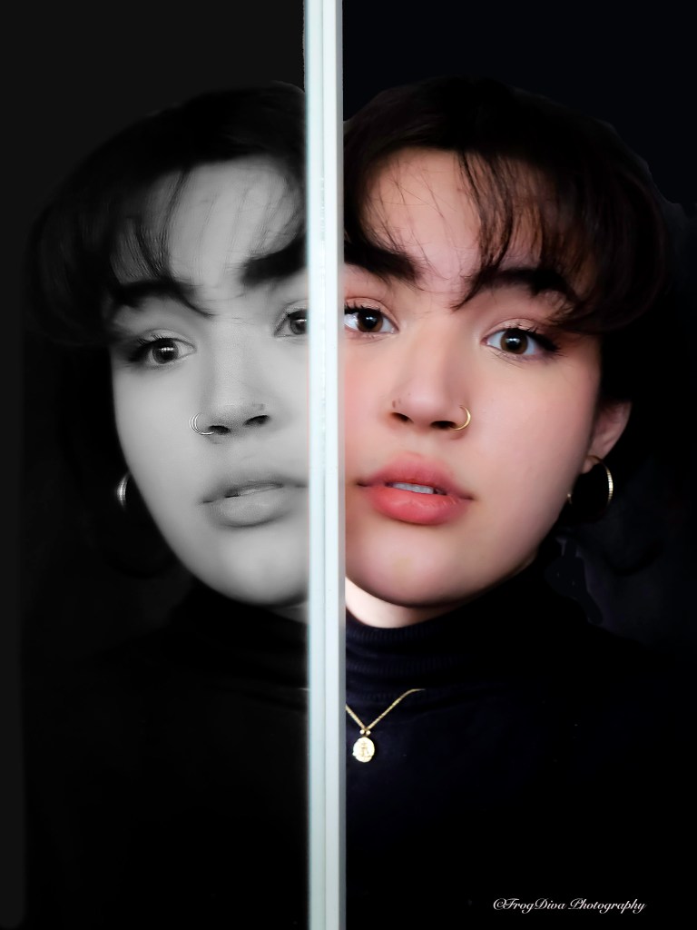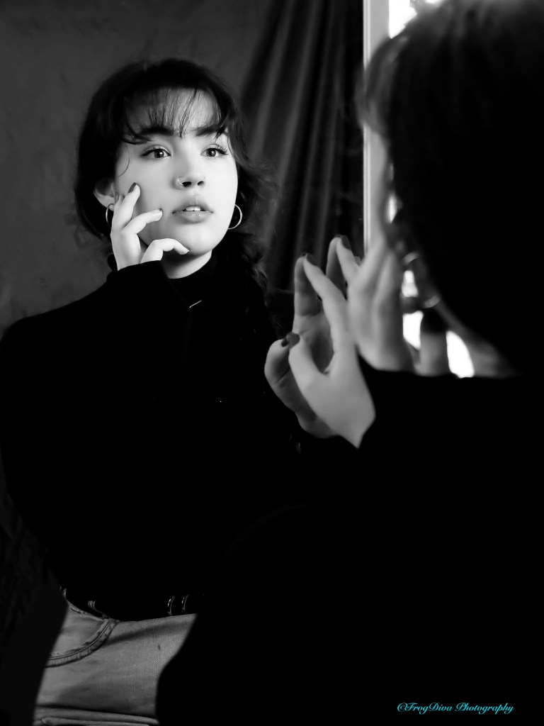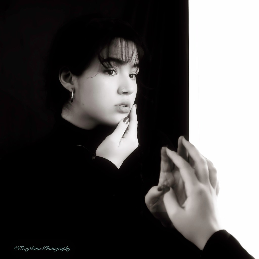 Let me ask you though – what did you do with your life during these last 12 months? Did you merely stay home and wail, grumble and fall into a psycho-social-emotional black hole? Or did you take the bull by the horns and took advantage of the strange situation to pursue new interests? Many learned a new language, others learned to cook and discovered in the process that they love baking as well. Those of us in the creative visual world made our adjustments in order to make changes that we otherwise would have never have considered. Case in point, home studio, and here is the latest crop of photographs my daughter and I churned out, from a set called Mirror Work: