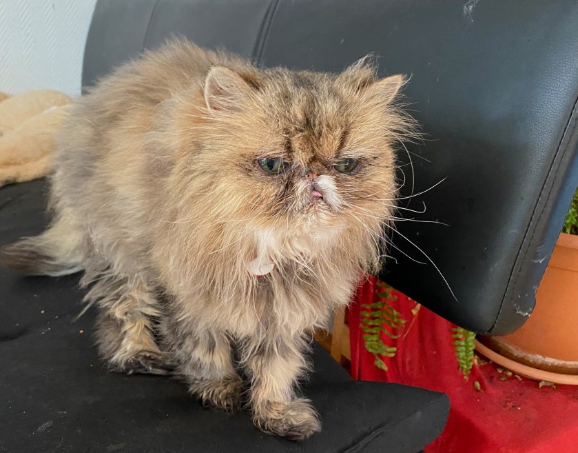 Lolita on the other hand, is a doll to brush. She’s like a floppy Raggedy Ann who is amusing to look at, doesn’t complain and lets me flip and flop her in any which way. Her grooming is done in a fraction of a time that Cherry’s, with no ad hoc bitching involved. The advantage of feline dementia is that five minutes after the whole event she has completely forgotten it, just like she forgets that she has had her lunch or dinner already.