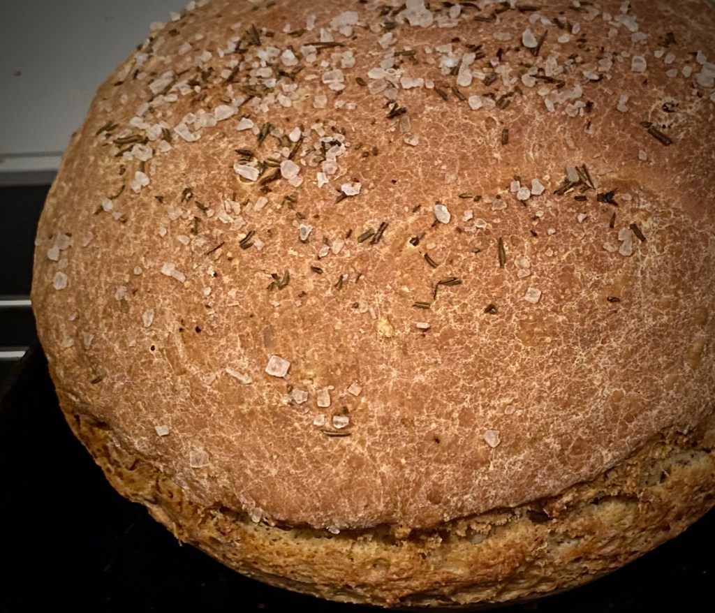 Remove the risen dough and shape into a loaf. Sprinkle with rock salt and rosemary mix