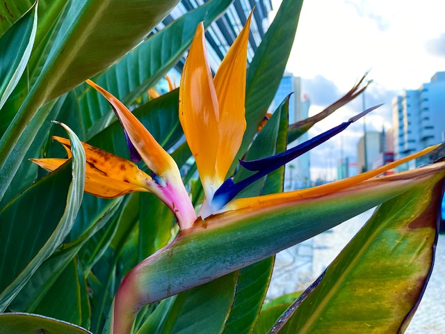 When I got off at my stop the first thing that caught my eye was a pot of birds of paradise. My goodness did I stop and stare. The last time I saw such an abundant collection was in India. I can’t even recall seeing them in Thailand, although they were in almost every flower market. This instantly brought me back to my childhood in Kenya, because Mommy always had them in her garden, and seeing the flowers today was like receiving a little love note from here – not to mention that today is also my Lola Floring’s 116th birthday, so powerful messages all around from the venerable ancestors! There is something about this plant that grounds me, reminding me of my journey through many countries. So after a prolonged absence from my life, I was thrilled to see them again.