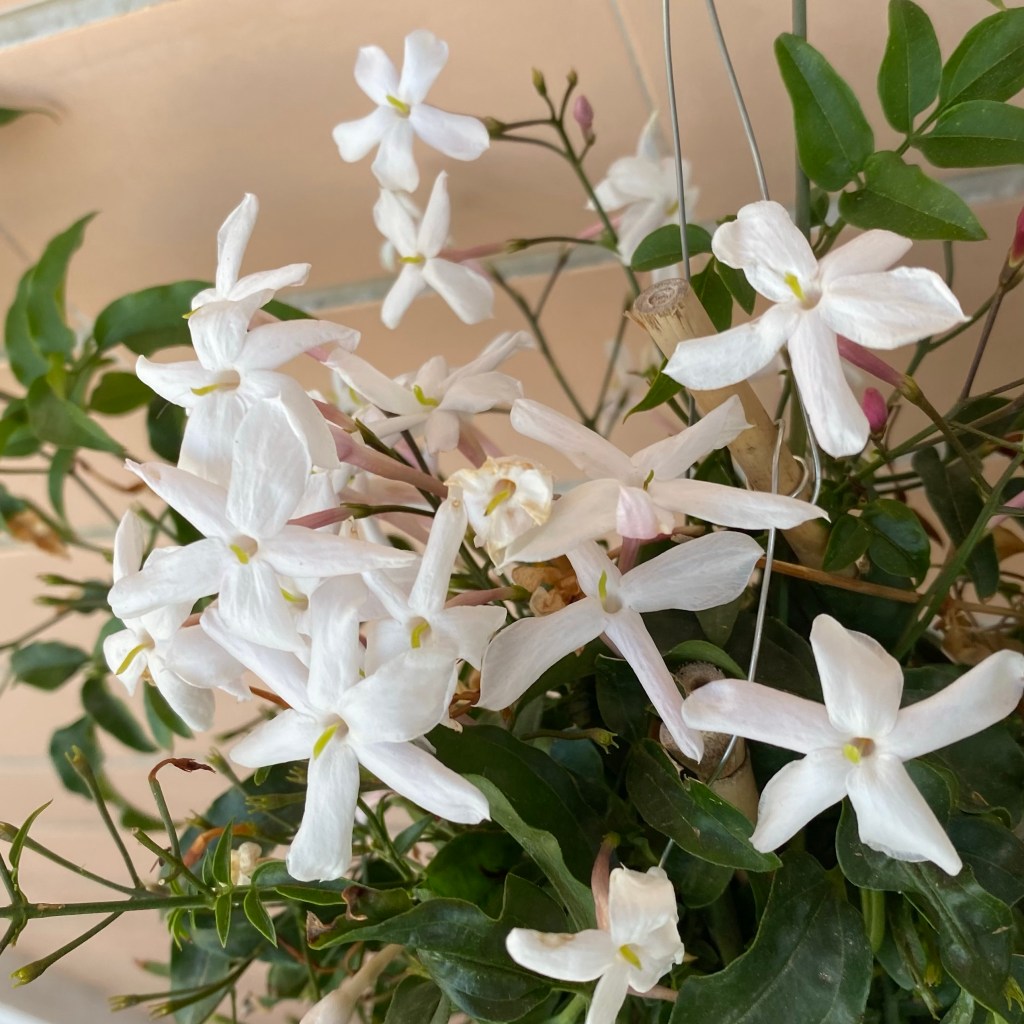 What an absolute luxury to wake up to sunshine! It meant that my alarm had not gone off at the usual 05:00 and that I didn’t have to head out the door in darkness. On the contrary. There was sunlight streaming through the curtains, and when I opened the balcony door to let the fresh air in, my lungs were filled with the heady scent of jasmine growing in the planters. I may have left my orange blossoms behind but I have fallen straight into the embrace of jasmine which means so much to me (see links at the bottom of the blog). Not a bad change if you ask me, not bad at all.