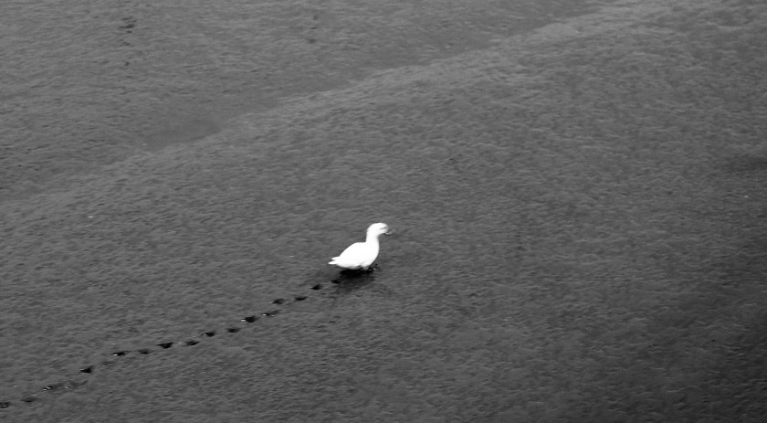 The shot of the day is literally an odd duck. Every morning on my way to the station I meet this bird and a duck, who seem to be on patrol around the boat at the same time everyday. The little imprints in the sand were what I was after and reminded me of the classic Footprints in the Sand