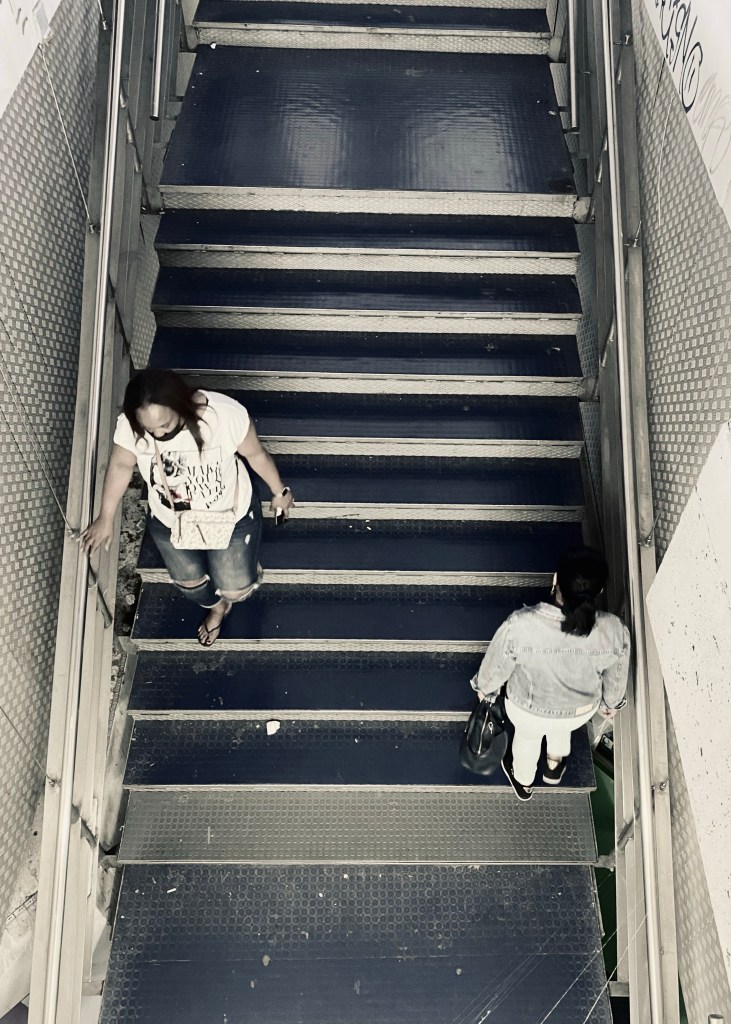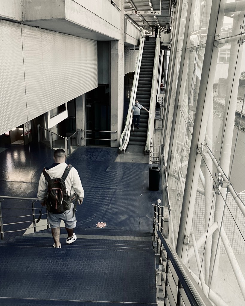 These next shots are from this morning. In the first one, I draw your attention to the man on the escalator. He gets on every morning in Alverca and alights in Sete Rios with me. He is completely blind but self-sufficient. Someone always helps him onto the train and off but the rest he navigates on his own, although I’m not sure how he manages getting on the escalator. This morning I caught up with him at the bottom of the stairs and noticed he was heading in the wrong direction so I steered him back to the central area he was aiming for.