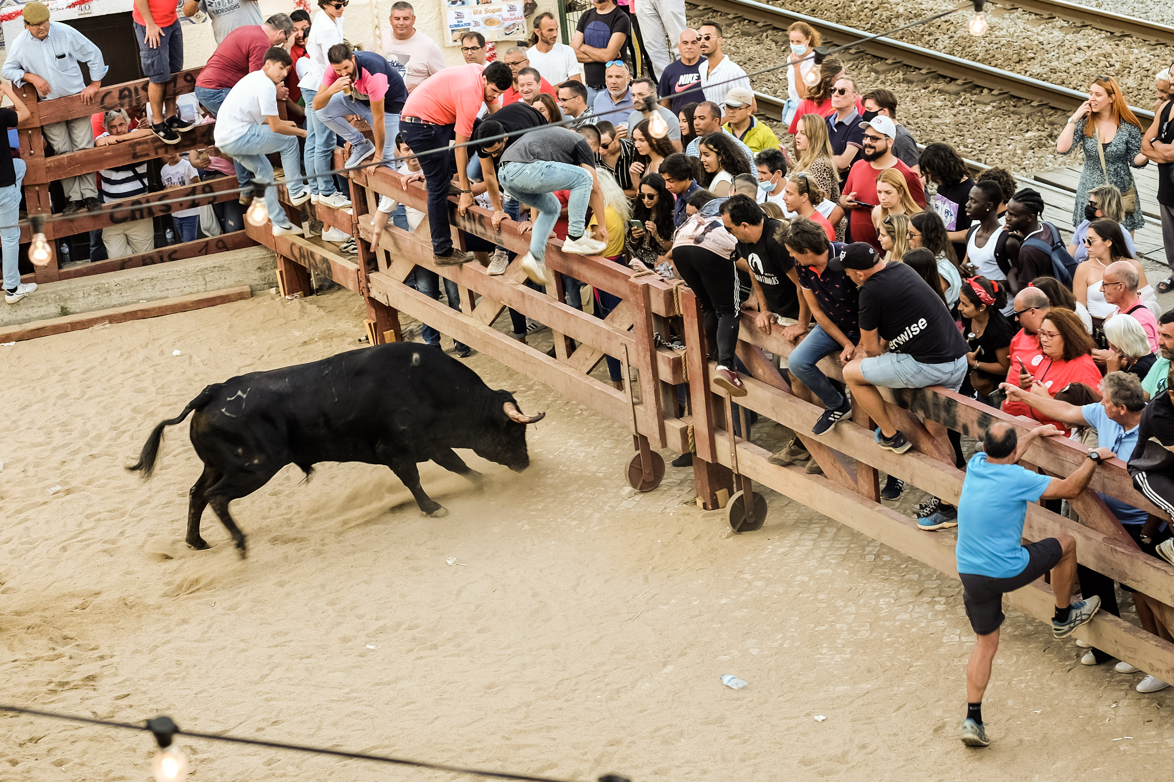 The bull is “confined” to a small area at a time in order to contain the chaos, and the bull to “attack” the crowds for a longer time. What this means is people on both sides of the barriers placing themselves in harms way, or waving something at the bull to provoke it. For the adrenaline junkies, the thrill is jumping back over the fence just in time while the bull rams into the wooden barricade.