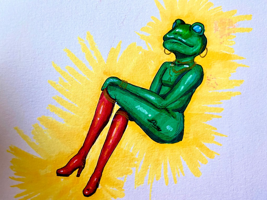 At some point I asked my daughter for her art work as Christmas or birthday presents, instead of store-bought ones. To me, this was was the ultimate gift of time and love she could present me, knowing that she focused, put in the effort and that intrinsic need for perfection. One of her productions from 2015 became my official FrogDiva logo, which is copyrighted and familiar to all of you