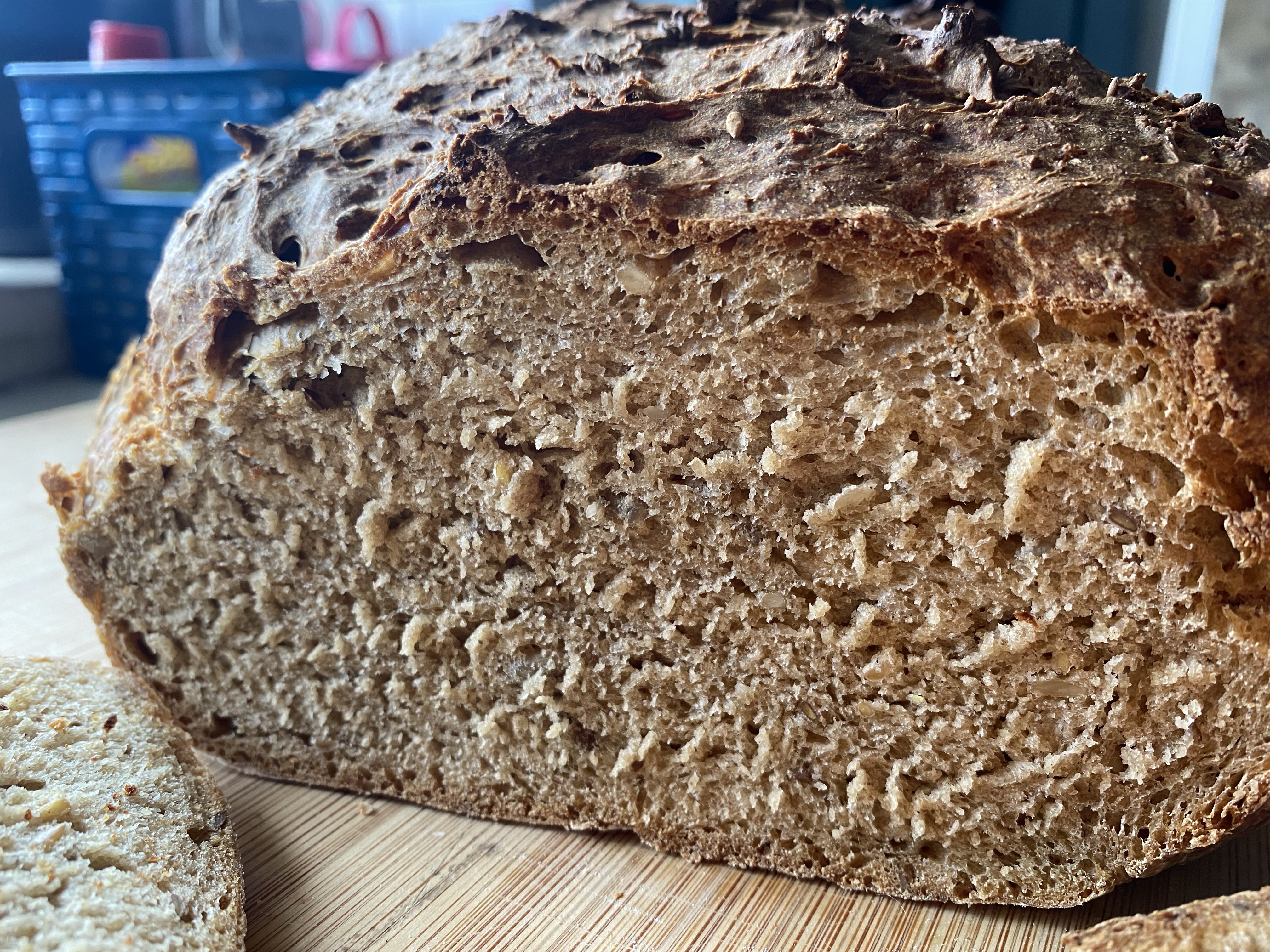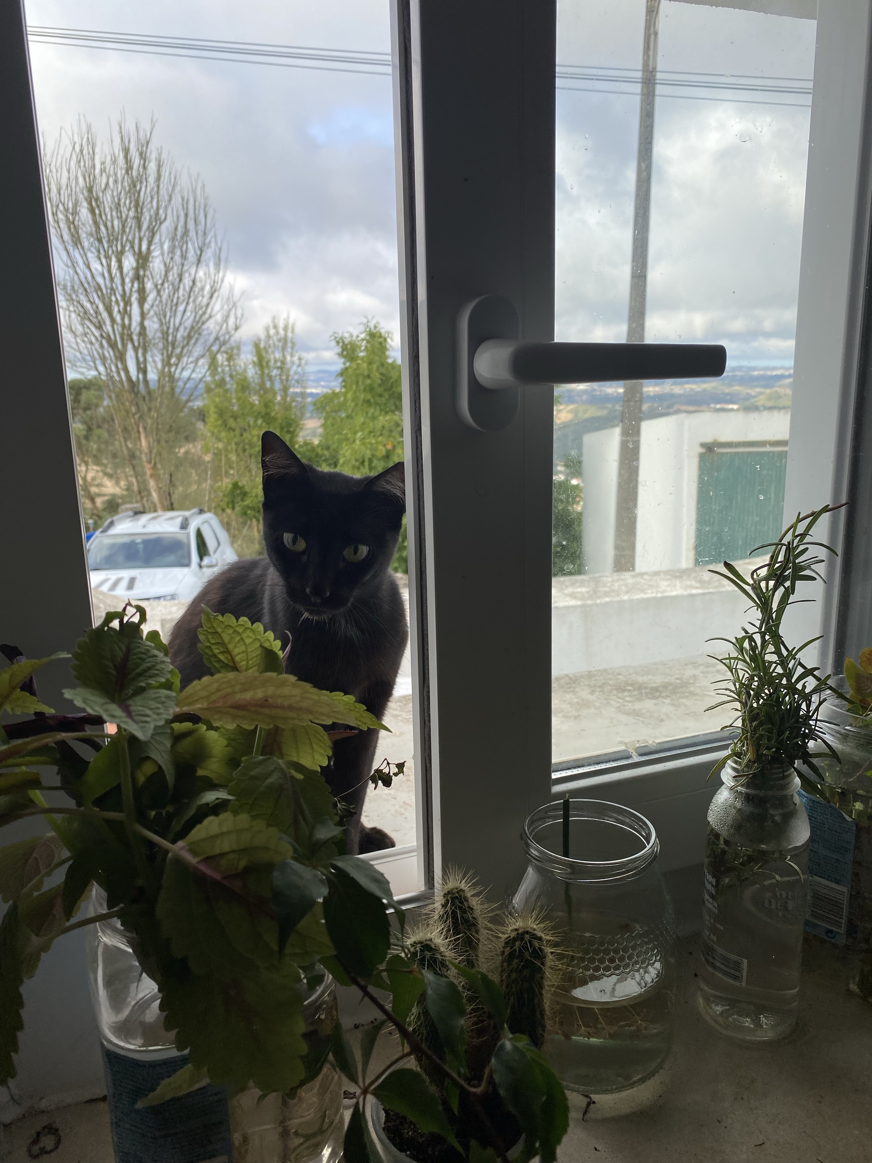 After breakfast I decided it was time to bake my first loaf of bread in the new home, the first in six months since leaving Berlin and something I have truly missed doing. Not only did was I looking forward to that delicious aroma of freshly baked bread wafting through the house, but I also wanted to test the Portuguese flours that I found yesterday and see if I could come up with an acceptable whole-wheat multigrain artisan loaf. While I gathered my ingredients at set to work at the counter facing the window, a curious little face popped in to greet me. The black cat, I was told, is named Xico, although I would have preferred to call him something more dragon-like. He was so cute and friendly that i succumed and offered him some milk. I turned my back for two minutes and when I looked at the window again there was another face, and this fellow’s name is T’challa. Again, I would have named him Simba, but I cannot interfere with something the neighbours have already established!