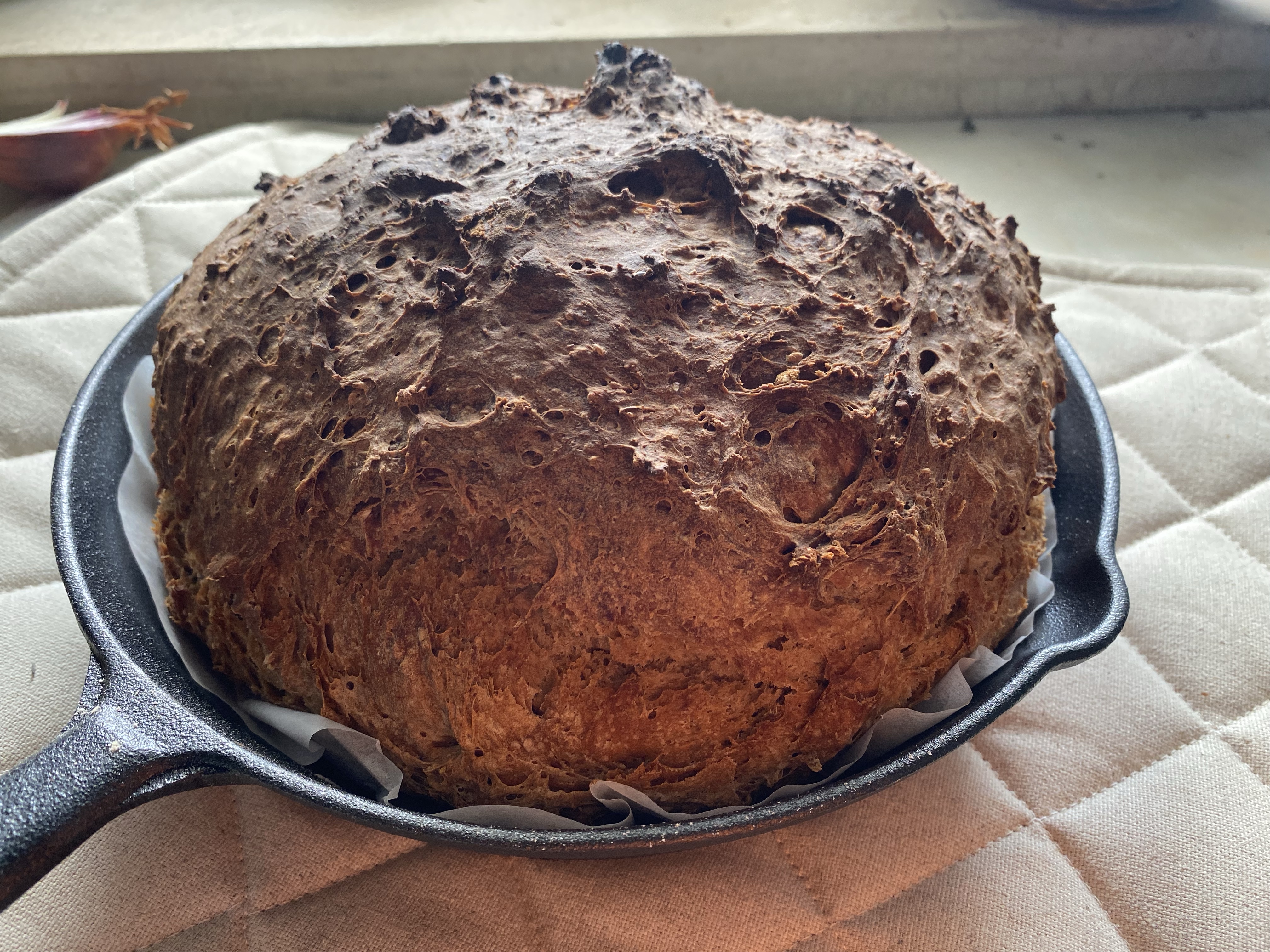 Speaking of equipment, dealing with a new oven is always a bit of an adventure the first time you use it. Once I got it to fire up and pre-heat, I took a peak at the dough and it looked exactly the way I wanted it to! Here are the results, and yes, I did pour in the remainder of the beer I failed to finish last night.