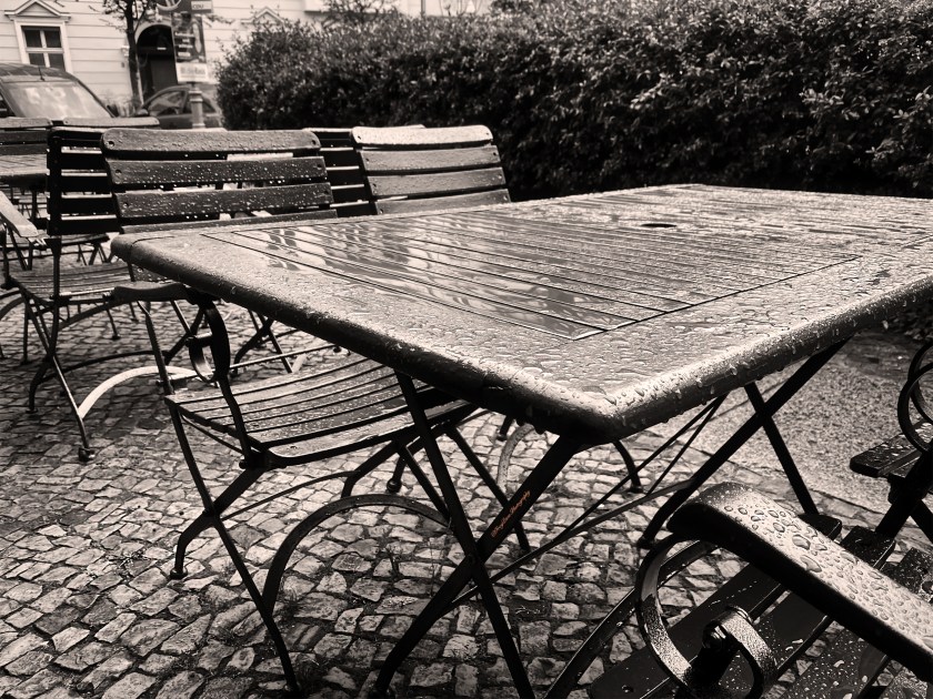 I don’t need a weathervane on tope of the house because there is a huge an old walnut tree in the garden that I can see from the kitchen window that tells me exactly what the windspeed is or how hot it is. Today the wise old tree looked as it it were break dancing on steroids, swishing and lashing in all directions. At the height of the storm, I wondered with great trepidation whether one or more of the branches were about to snap off. When I went up to the roof terrace to make sure everything was secure, I had to hold on to the railing to keep my balance. I looked down at the walnut tree and wondered how we were going to make it through the day.