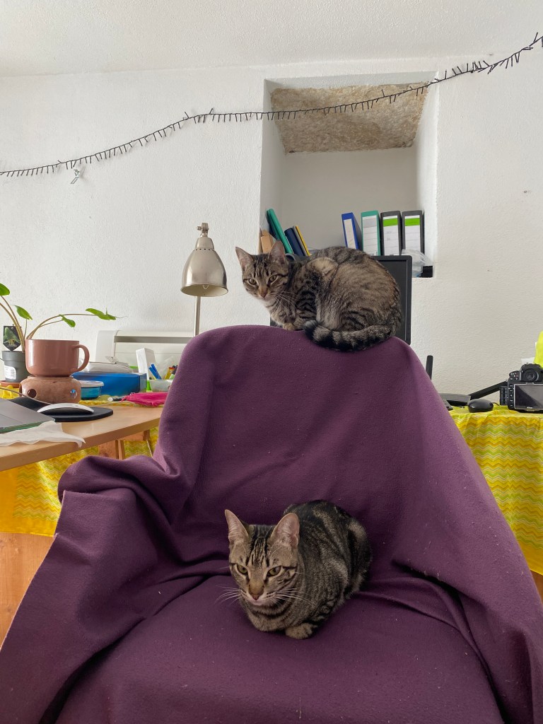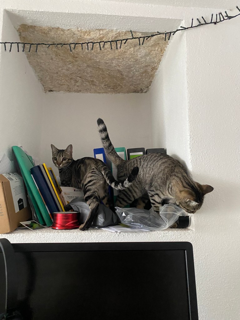 So today we are all behaving and hanging out in Mom’s office. They find keyboards interesting, while I prefer screens, which is a fair division of disaster. I don’t mind having house guests, but this age gap thing is a challenge. The language barrier isn’t too bad either, a hiss is a hiss, and a slap on the nose is universal.
