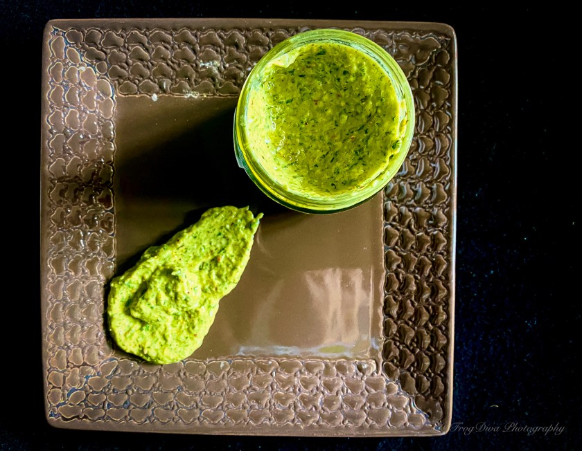 Like many of you out there I am not a great fan of fresh cilantro (coriander). I grew up with it in Mexico and lived another 12 years with it in India as well, where it is added to basically every dish under the sun. If I can avoid it or substitute parsley instead, I will, just like my mother did. This morning I searched the internet for the recipe of mojo verde and discovered that I had all the ingredients in my kitchen. Well, except for the fresh jalapeños. My grandfather would have been proud of me, as I stood in front of my blender and kitchen counter and decided to wing it and create the FrogDiva Mojo Verde.