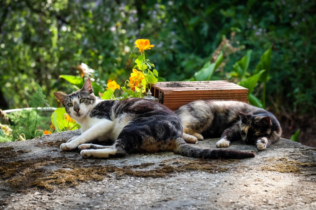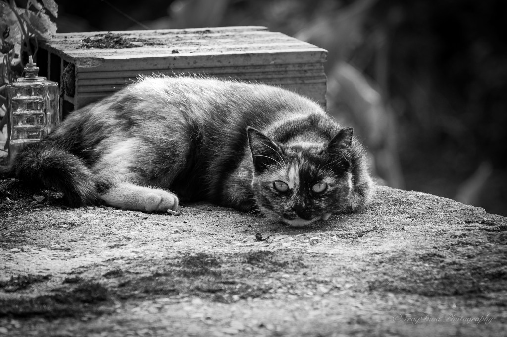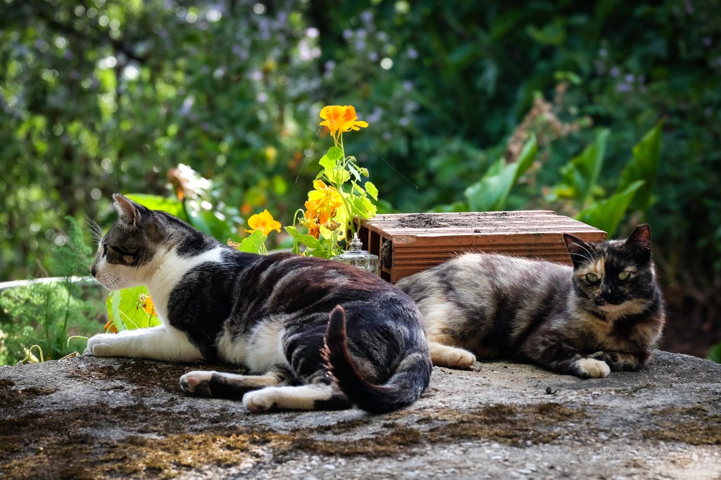 The models of the afternoon were Xico and Inky, my regular companions in the garden who love to play tag in the sunshine and leap over the different levels. They are the classic example of play hard, chill seriously. It is because of them that I now have my zoom lens attached all the time, because I wanted to catch some of these wonderful serene moments.