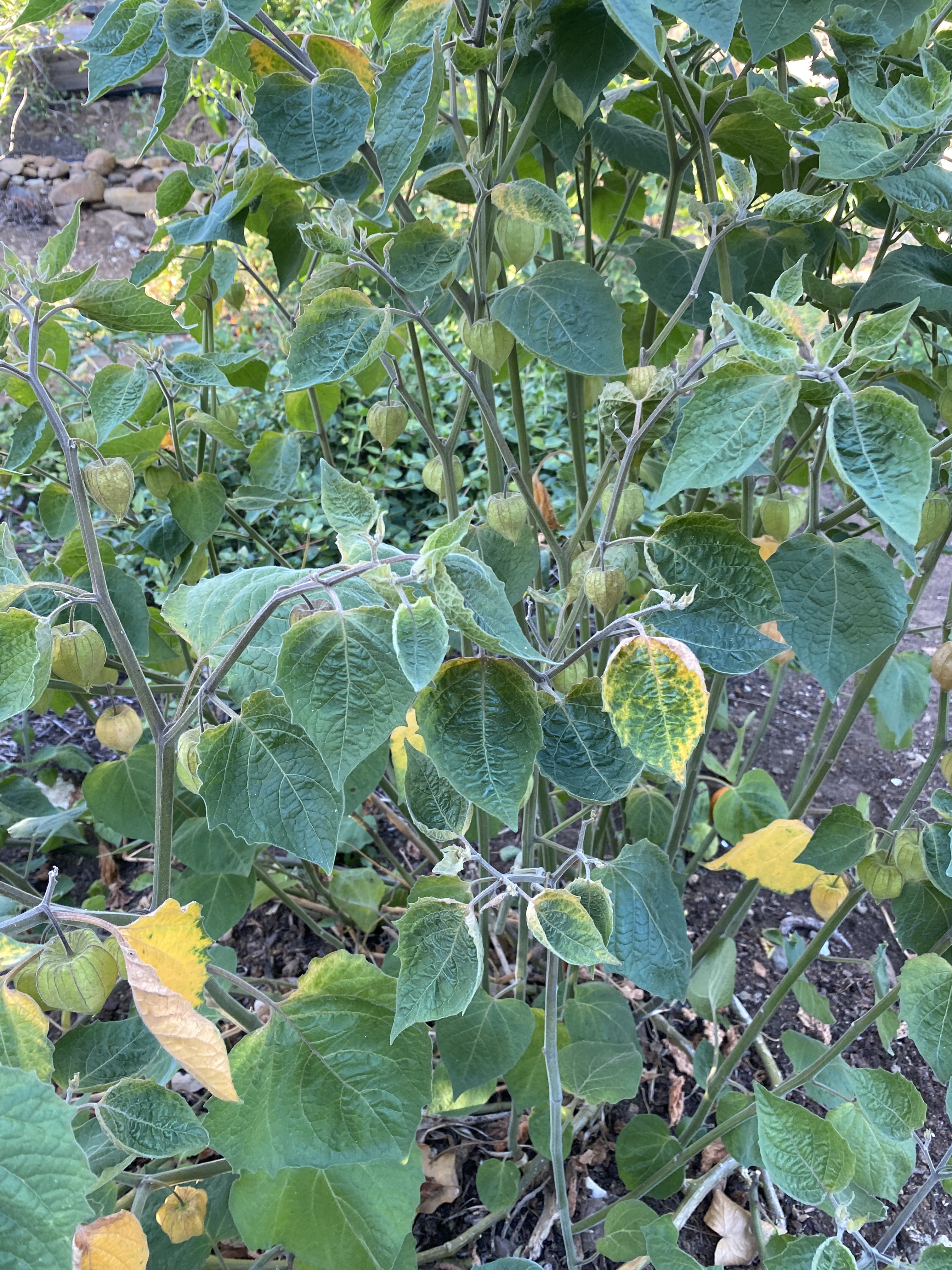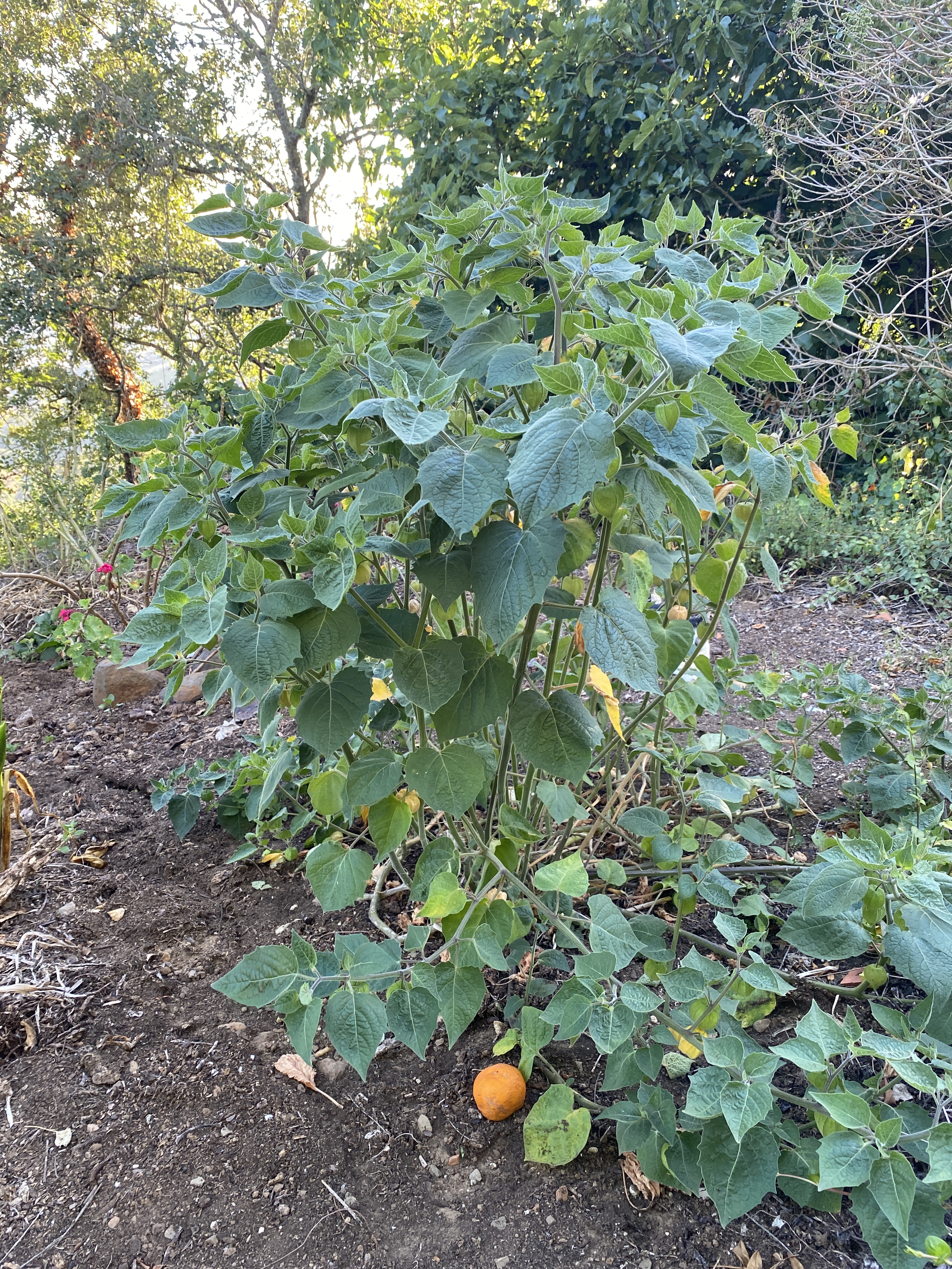 In Germany, I always found physalis in the supermarket but the prices were so outrageous that I just admired them from a distance. So when I discovered that I had a bush in the garden here in Portugal, it was an affirmation that I had truly come full circle. At first I had no idea what the peculiar plant was with its strange snake-like branches. But I was introduced to this fantastic app called Picture This that you can install on your mobile phone and use it to identify just about any plant on the planet. Life saver extraordinaire, especially for gardeners like me who just dig and prune on a wing and a prayer! So I zapped my hand-dandy app at the garden UFG (unidentified floppy greenery) and my heart raced when I discovered it was a physalis! Needless to say, I enthusiastically cleared a path around it and gave it room to spread out and grow, and oh boy did it grow! This shrub that was barely above my ankles almost as tall as me now! And last night I harvested the first fruits.