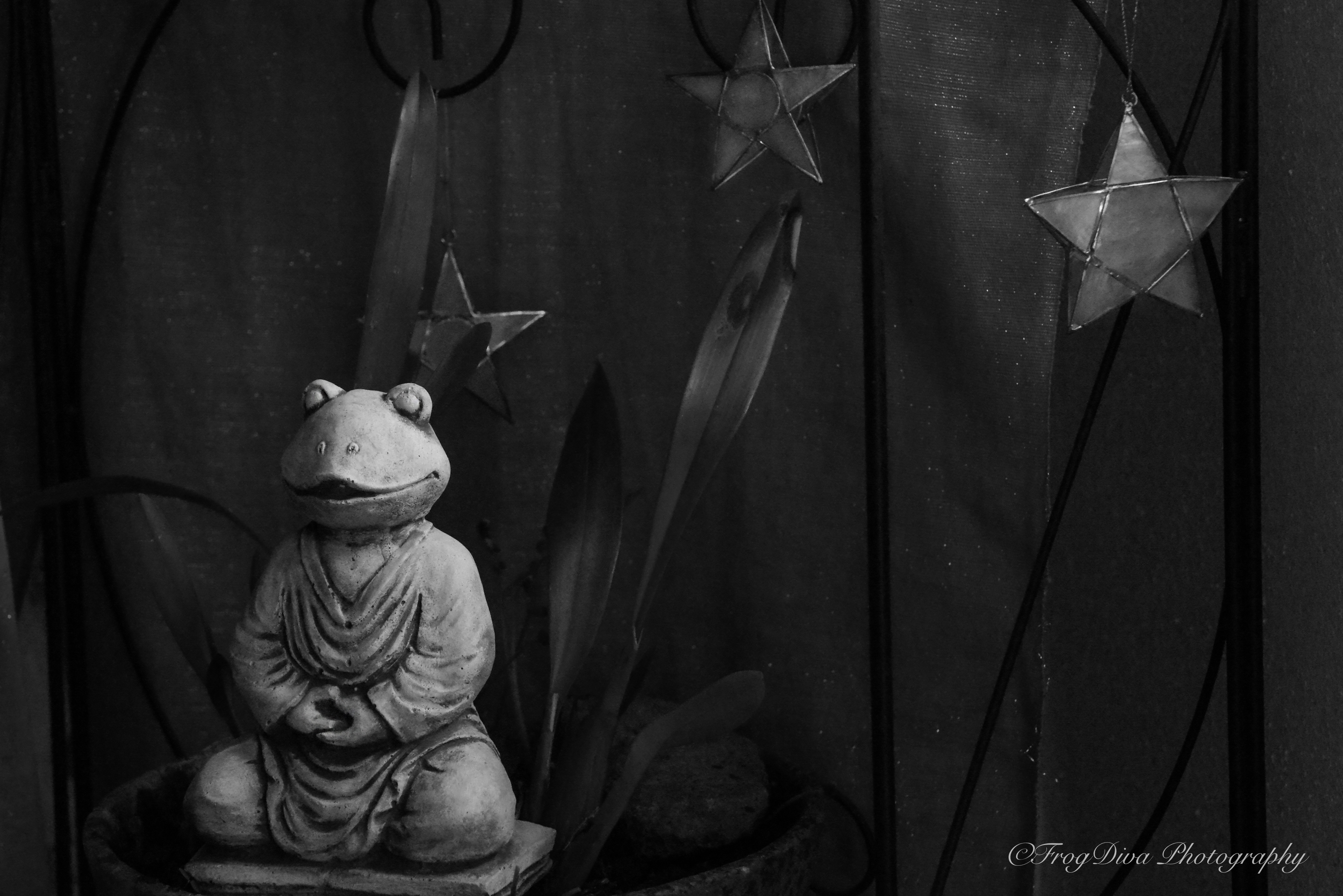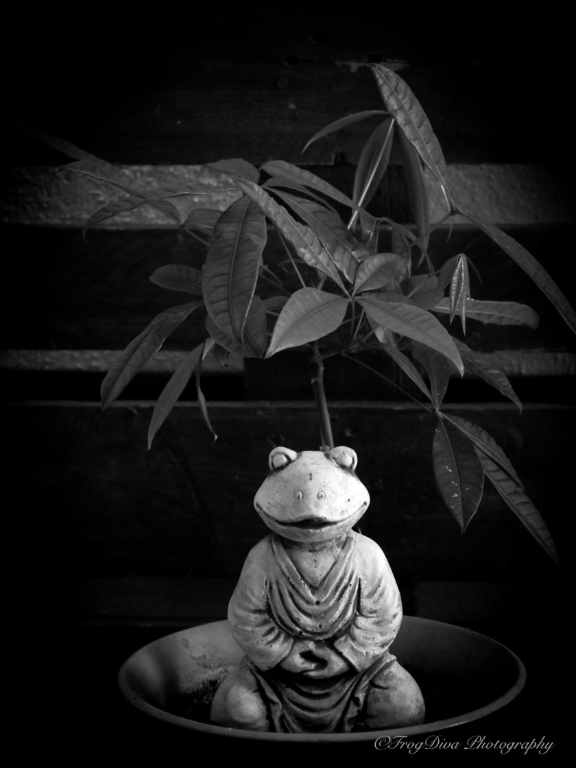 Some of you might remember a blog entry from last year when Sensei Frog arrived, ironically, from Germany. Well, he’s been a wonderful guardian of the meditation area and recently also got promoted to still life model! I should have added him to the triptych blog yesterday, just totally forgot about the shots until I stumbled on the set while cleaning up some files.