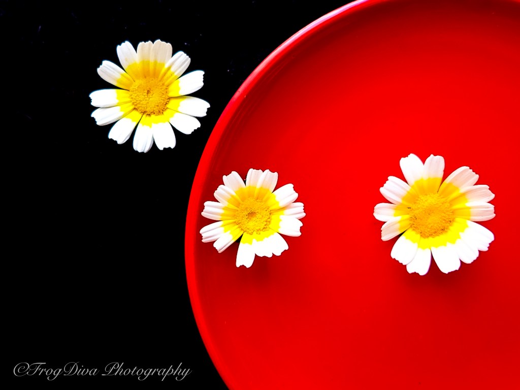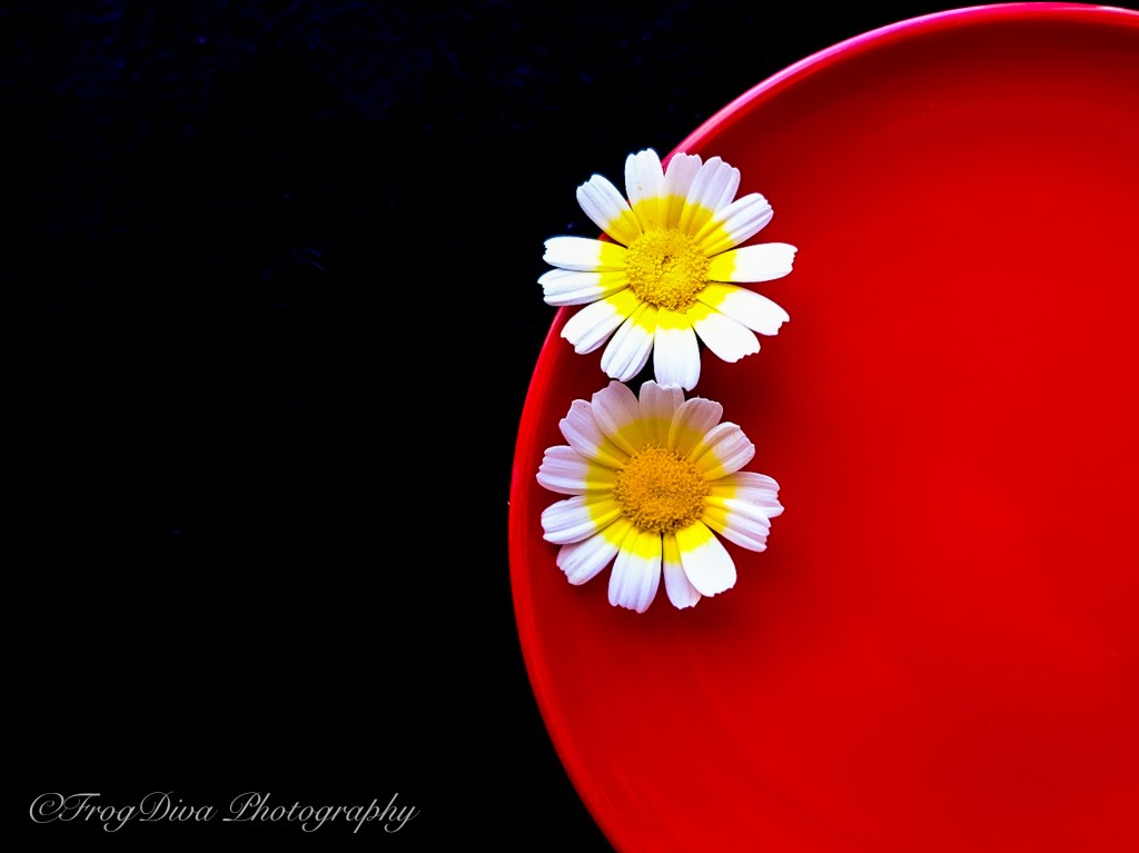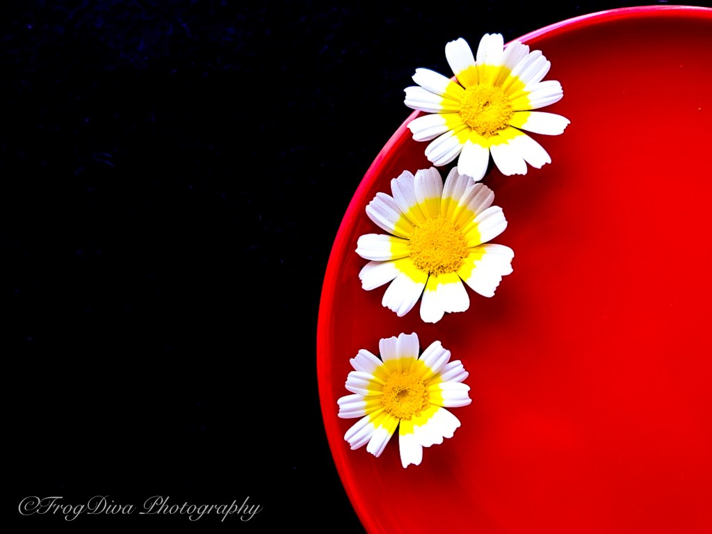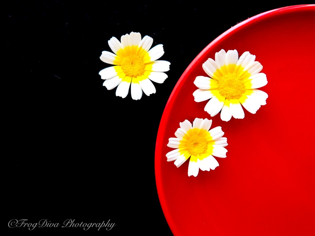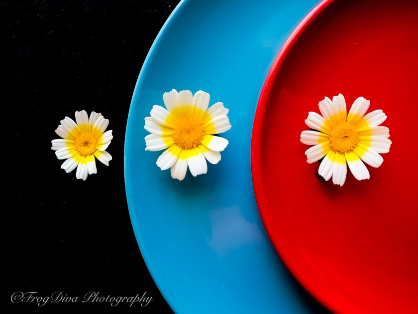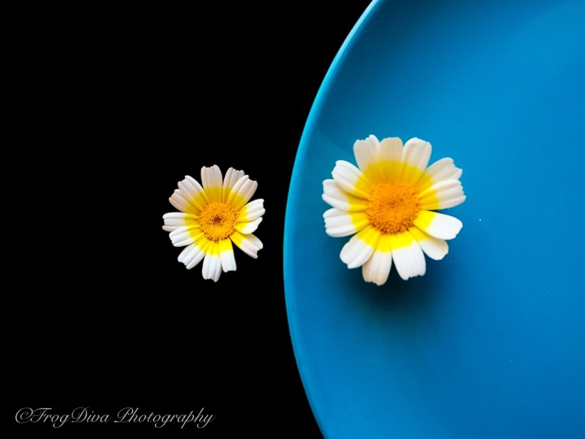 Maybe it’s age, or perhaps it is the quiet contemplative life that I lead now that has me leaning towards minimalism and zen more prominently, but as you saw in the last set of triptychs and quadtychs, my signature look is that of a single subject against a prominent black or monochrome background. I played around a bit with the daisies and came up with two sets.