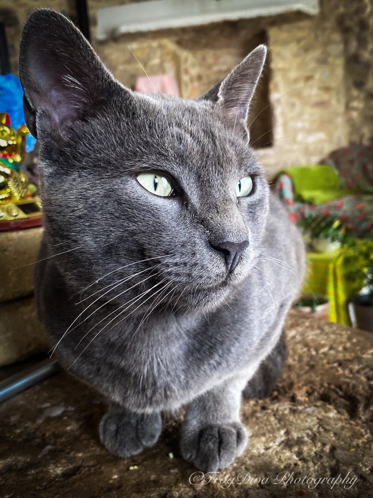 Last but not least is the lead contender, Sir Reddington. This gentleman has made several guest appearances in the blog already and was long admired by Cherry. He was abandoned here in the Shire about a year ago, and wore a red collar at the time, which is why I called him Reddy, and then expanded it to Reddington (inspired by The Black List). He is a handsome gentleman, has a lot to say, can be temperamental, has scratched and bitten me already in the past, all sheer self-defence, and is disliked by all and sundry around here because he is an outsider. He has all the trappings of a Chartreux, but without a proper inspection by a vet I can’t be sure. We have come a long way in our friendship, and ever since Cherry died he planted himself in the kitchen, showing his most gentle and charming side, and has yet to turn down a meal. He understands toys, simple commands (well, as far as you can command a cat, it is more of an invitation), and the greatest breakthrough over the past days, I can pet him!