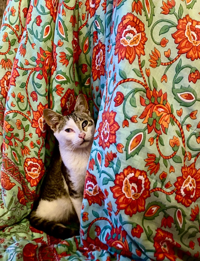 And somewhere in the midst of it all, Duke Reddington decided to grace me with his presence. Not for the kittens, oh no, not for them. He came into the office, where I had escaped to work amidst the madness, and sat on the desk like a king awaiting his tribute. This month he couldn’t be bothered to write his journal entry, and said he would resume in the new year instead, summarily proceeding to ignore the ruckus behind the door — his dignity far above the turmoil of those noisy, insignificant creatures. He simply wanted company, preferably human company who would understand that sardines and chopped potatoes were not just for Christmas dinner, but for any meal where a royal feline feels the need for extra sustenance. He eventually settled on his sofa and shut the world out.