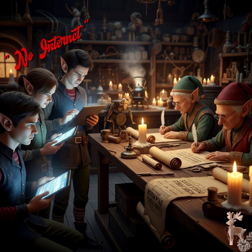 The millennial elves, known for their efficiency, were thrown into disarray. Without access to their digital tools, they resorted to traditional methods: paper lists, manual sorting, and even abacuses to track deliveries. The trouble here was that the veteran elves who had thrives in these antiquated methods had long since retired, and the current staff was entirely digital. The workshop, usually a hub of organised chaos, became a scene of frantic improvisation.