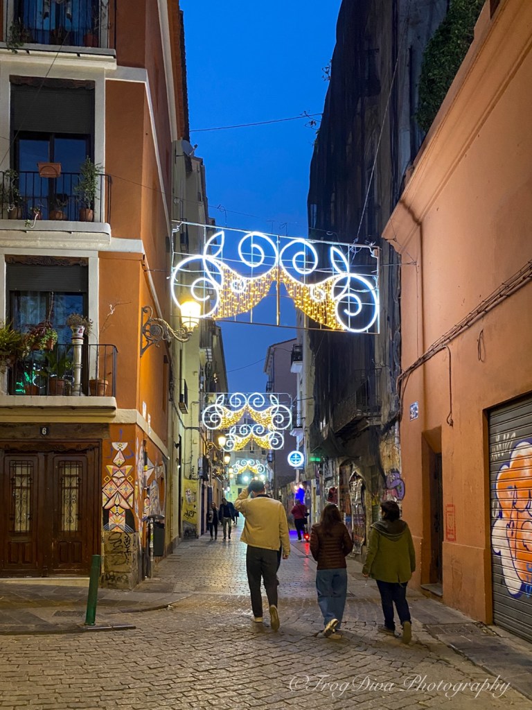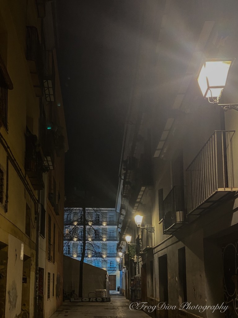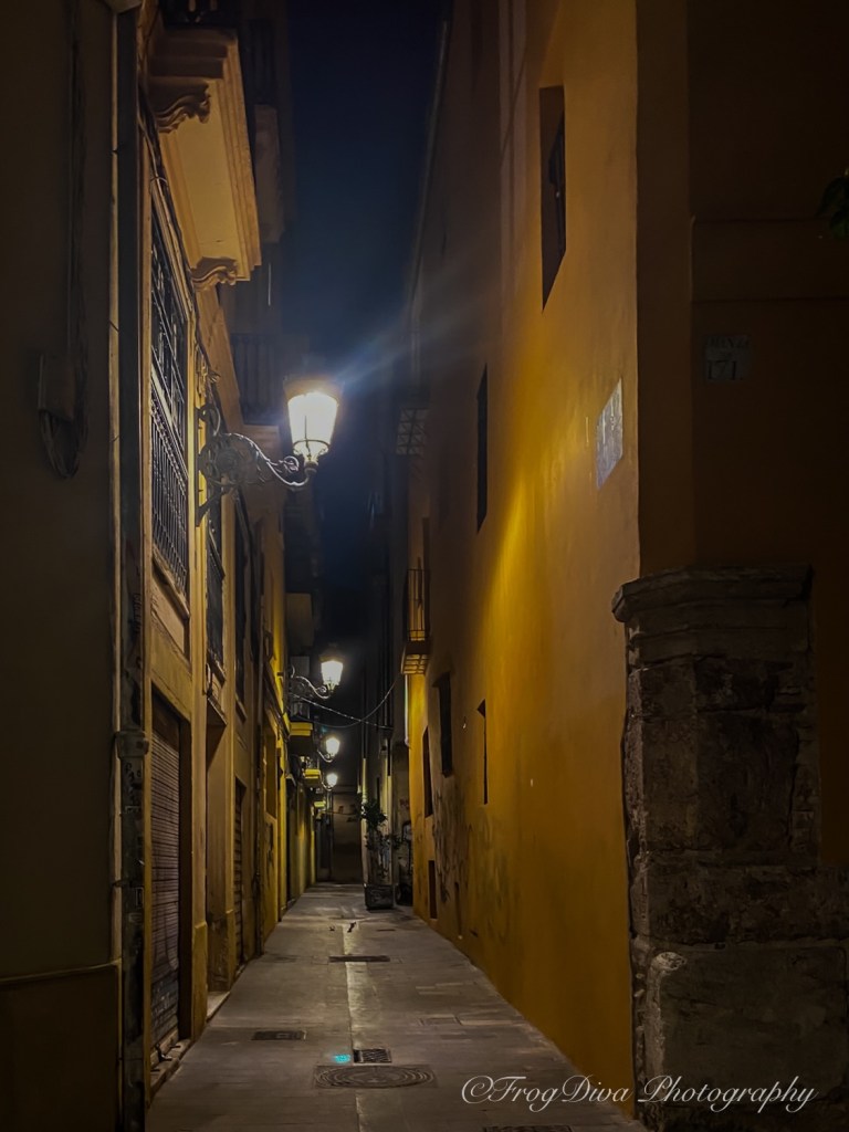 After dinner we wandered again through the cobblestone alleys of the old city. The street lamps glowed warmly against ancient stone walls, and every corner seemed to reveal another lively square or quiet passageway. Valencia at night has a way of inviting you to keep walking, even when your sensible brain says you should probably sit down.