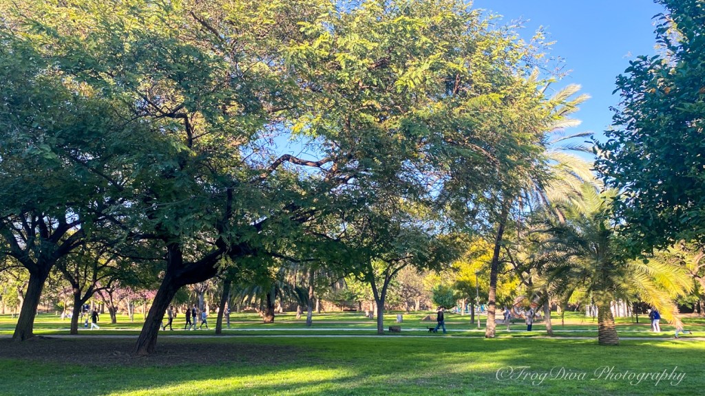 Afterwards we walked through the Jardín del Turia, the great green artery of Valencia. The park occupies what used to be the riverbed of the Turia River until a catastrophic flood in 1957 prompted the city to divert the river south of the city. Instead of building highways in the empty river channel, Valencia transformed it into a nine kilometre ribbon of gardens, paths, sports fields, and playgrounds. In spirit it feels a bit like Berlin’s Tiergarten or New York’s Central Park, a peaceful place where the entire city seems to exhale.