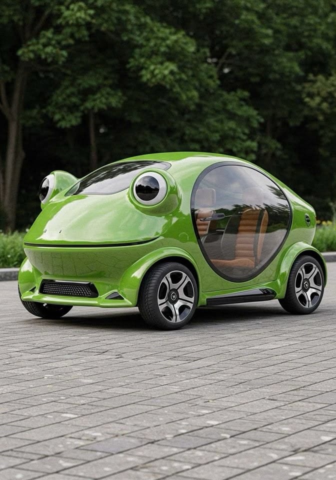 Just outside sits the Frogmobil, glistening in amphibian glory like a statement piece that went too far and then kept going. It does not simply transport, it announces. It whispers to passersby that yes, she has made it, and yes, she chose this on purpose. The headlights are eyes, the vibe is unhinged wealth, and the energy is don’t ask questions you’re not ready to hear the answers to.