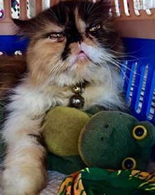 The travel cat is on the move again! She has come to suspect bubble baths now, since she has gotten one each time we go